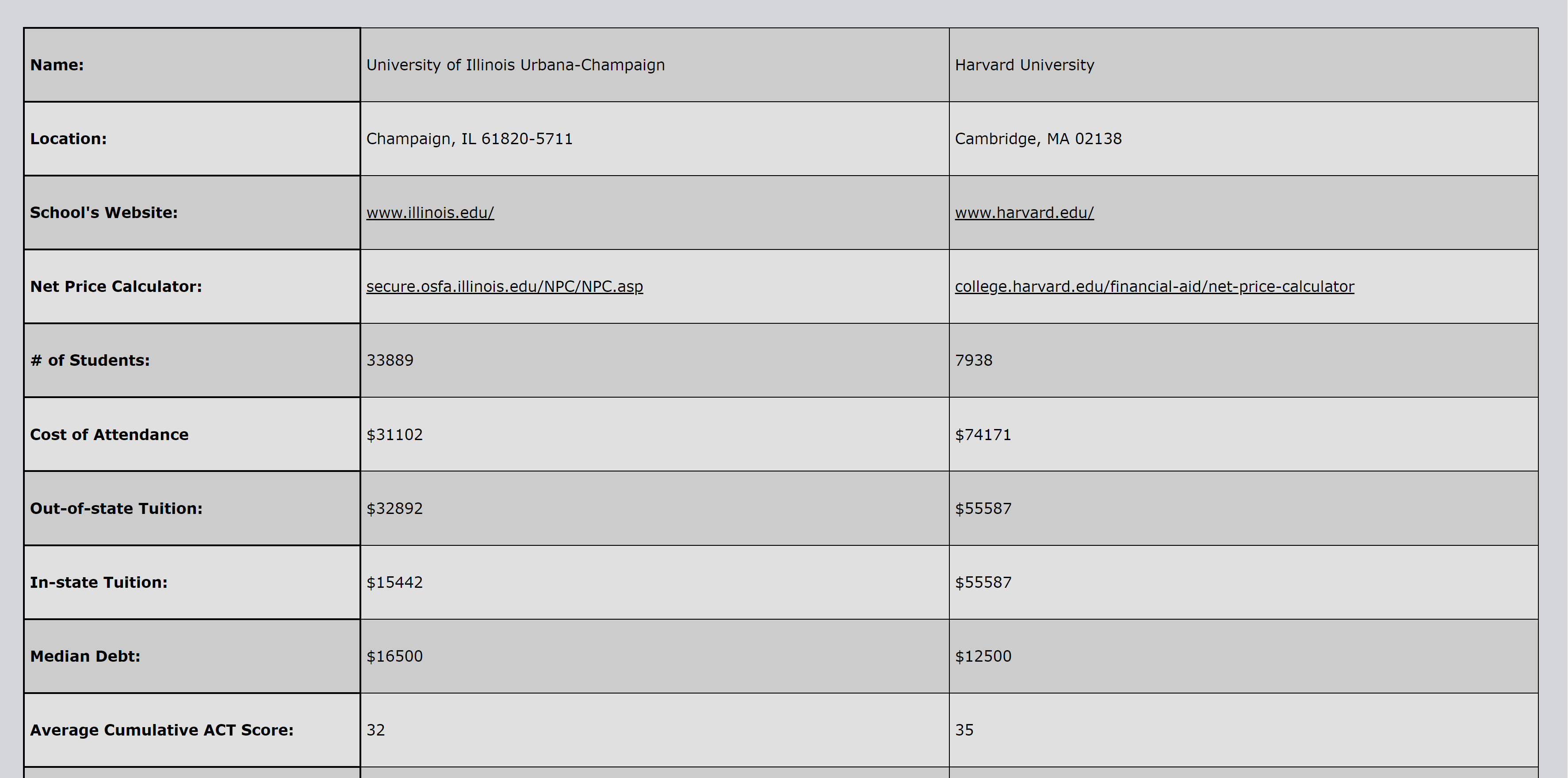 - Integrated the College Scorecard API to retrieve the most current and accurate data.